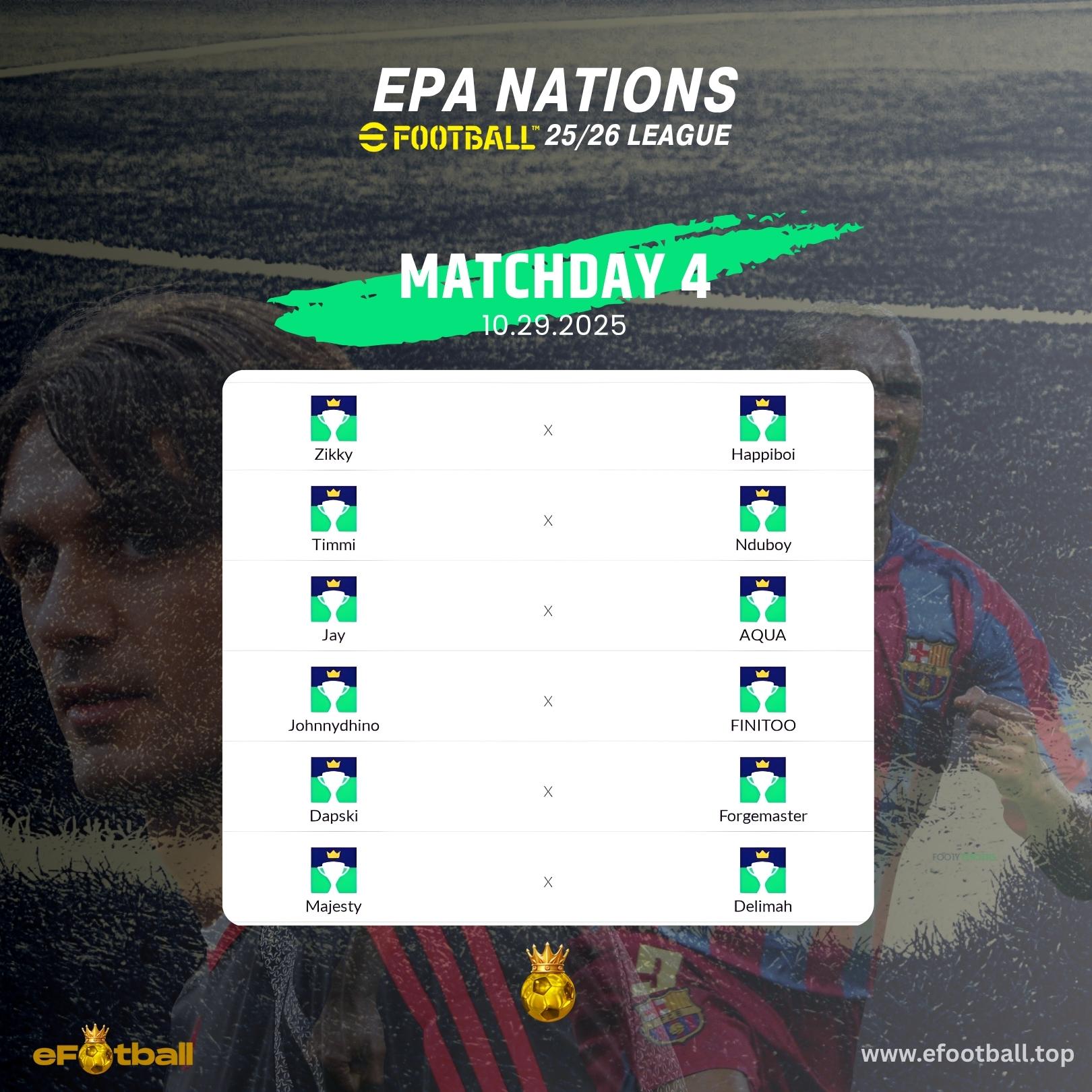 Matchday 4. Home and away to be played once.