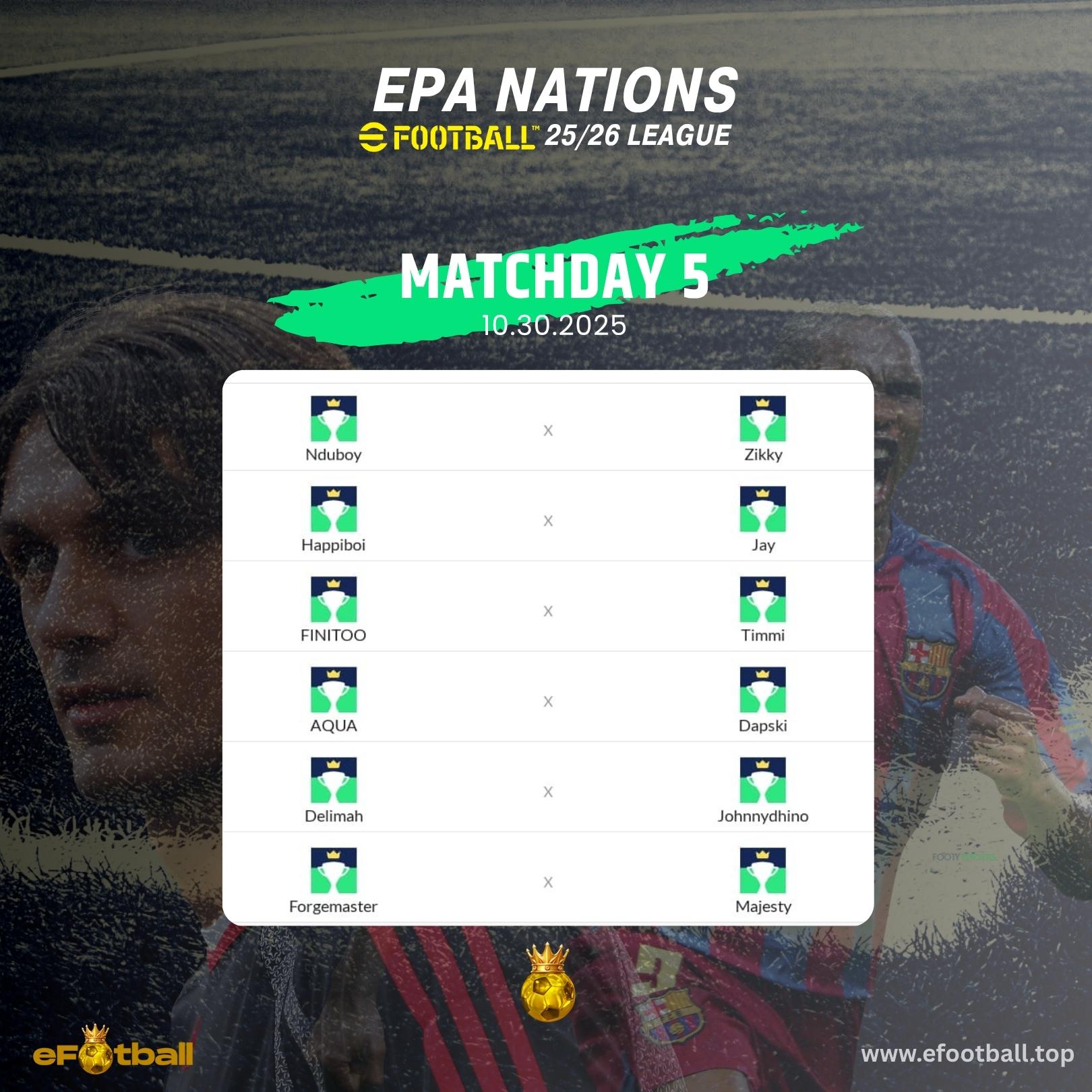 AQUA ZIKKY_0_0_1 Dapski Timmi IamDelimah Nora Forgemaster Nduboy Happiboi Majesty199 Jayyy JohnnydhinoMatchday 5. Home and away to be played once. [AQUA] [ZIKKY_0_0_1] [Dapski] [Timmi] [IamDelimah] [Nora] [Forgemaster] [Nduboy] [Happiboi] [Majesty199] [Jayyy] [Johnnydhino]1 Comments 路0 Shares 路1K Views -
